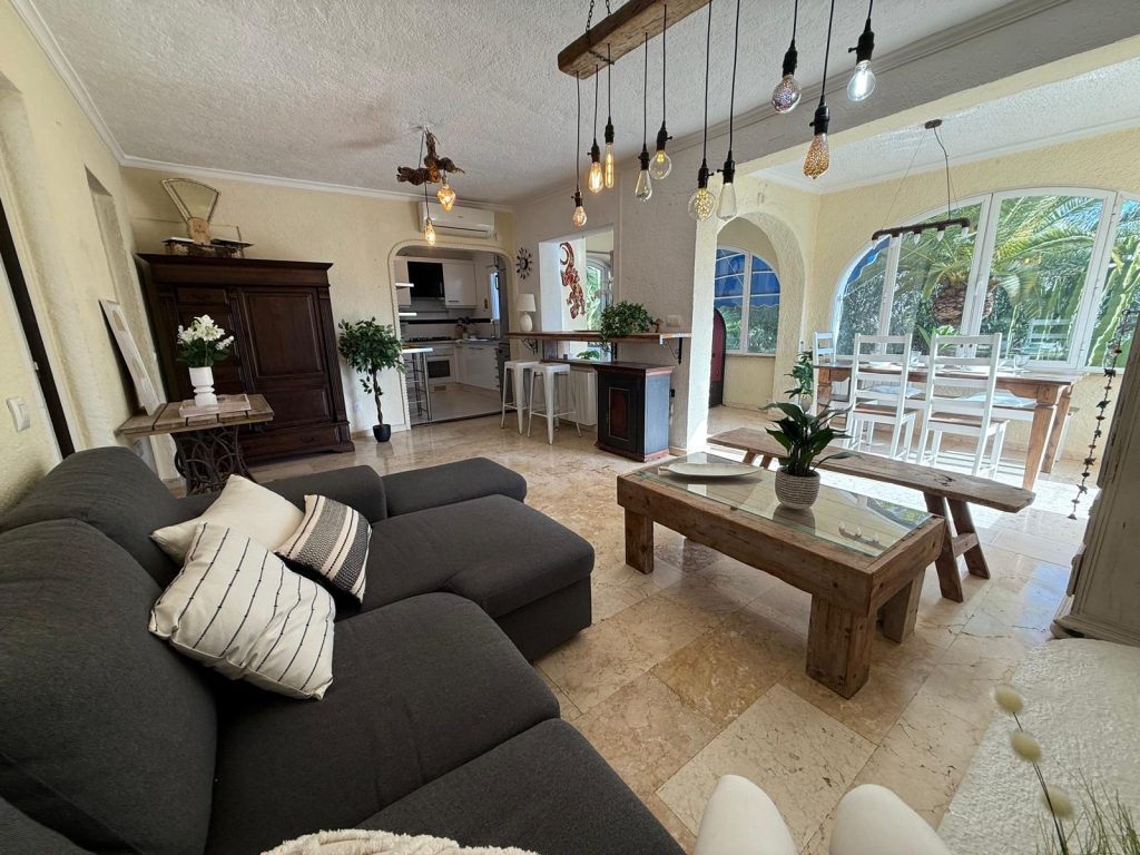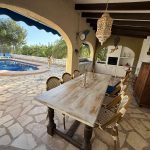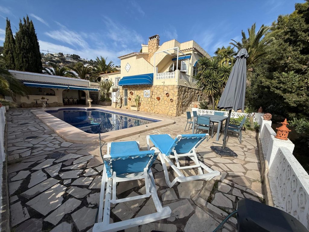 Dit is een sfeervolle Spaanse villa met groot prive zwembad (41,64m2) in Moraira op slechts 2,5 kilometer van Moraira centrum en de zandstranden! De villa heeft een bebouwde oppervlakte van 220 m2 en een grondstuk van 1000 m2. Zodra u het afgesloten terrein betreedt wordt u verrast door de prachtige tropische tuin! Het overdekte terrasje voor het huis heeft een gezellig zitje! Via de voordeur komt u in de woon- en eetkamer met aangrenzend de open keuken. De open keuken is voorzien van o.a. een vaatwasser, magnetron, oven en koelkast met vriesvakken. Op deze etage vindt u ook de hoofdslaapkamer. Voor de woonkamer is er een terrasje met prachtig uitzicht op het zwembad en de baranca en heeft u toegang tot het dakterras met ook weer dat prachtige uitzicht.