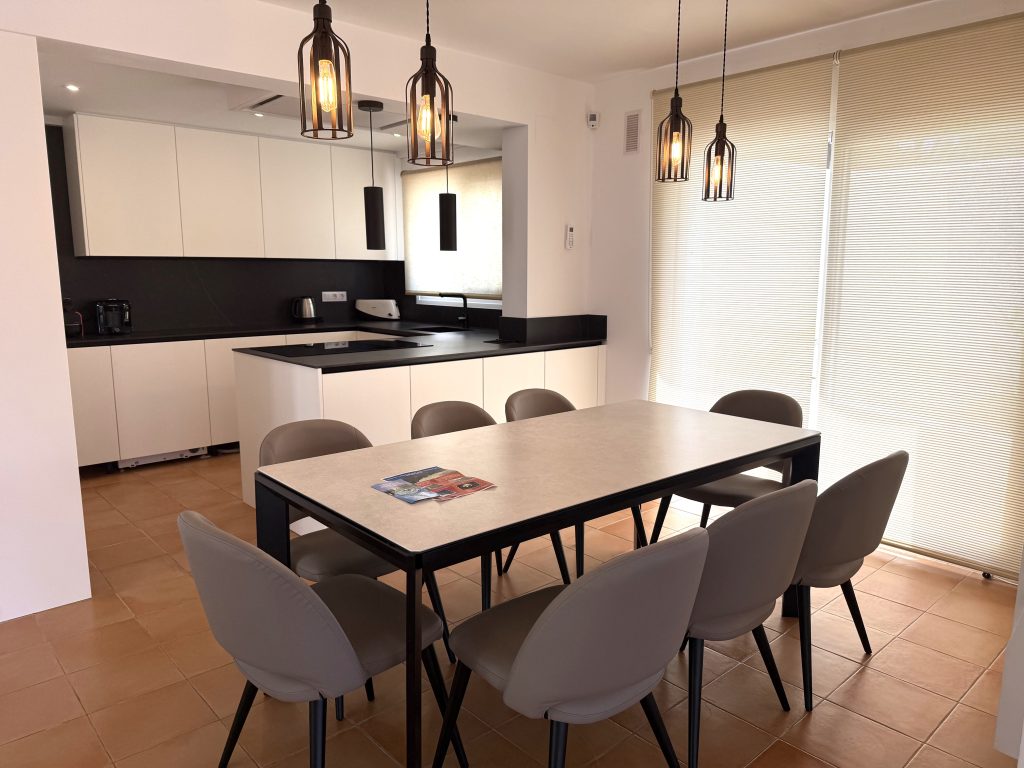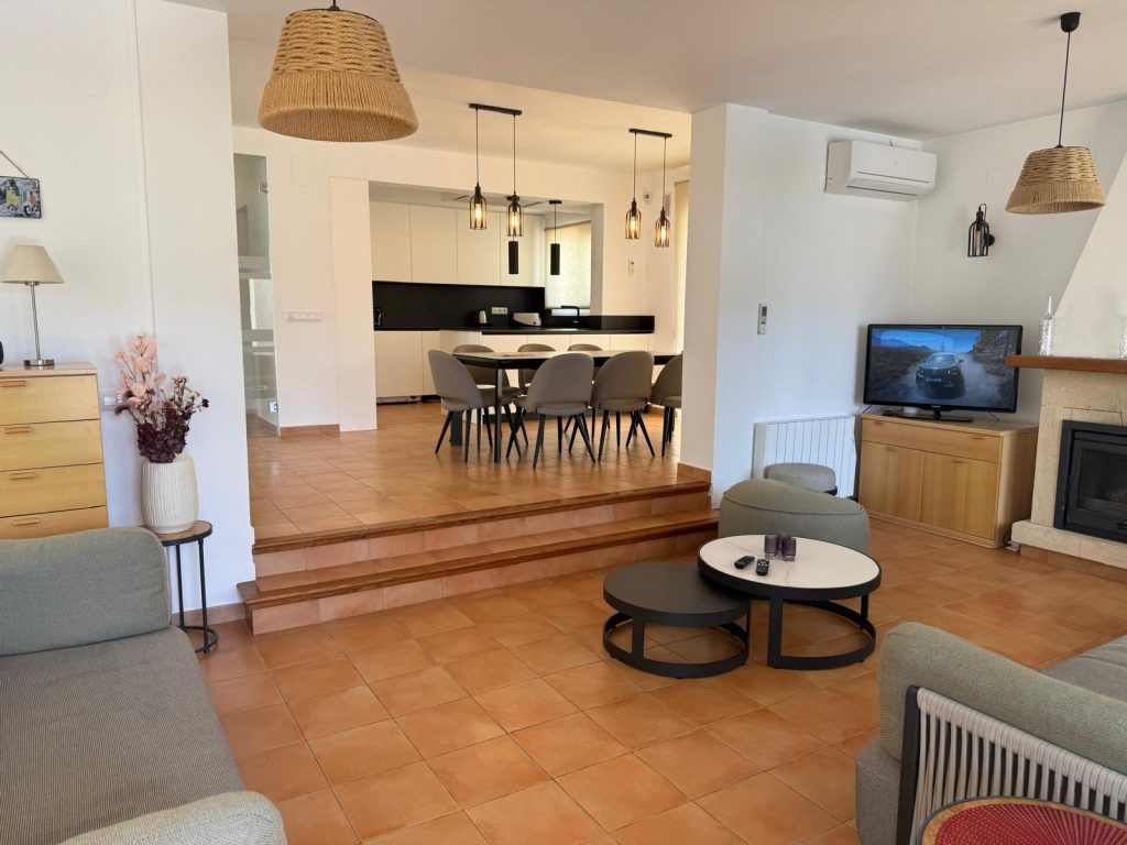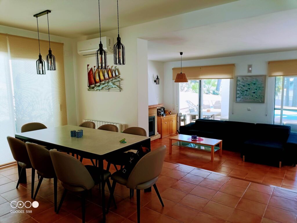 Deze imposante, grote en moderne Ibiza stijl villa in Moraira met prive zwembad en zeezicht, gelegen aan een zijstraat van de kustweg in Moraira, is ideaal gelegen op 200 meter van zee en Playa Playetes (nog geen minuutje lopen), 3 minuutjes lopen naar het Ampolla strand en slechts 500 meter van het dorpscentrum van Moraira (5 minuutjes lopen). Hiervan kunnen we dus echt zeggen dat deze villa op loopafstand ligt van zee, het centrum van Moraira en het strand. De villa is geschikt voor maximaal 7 personen en een baby, heeft een woonkamer met diverse banken, Nederlandstalige televisie en goed internet, eetkamer met eethoek, volledige ingerichte keuken, 3 slaapkamers met nieuwe goede bedden en airco en 3 badkamers ensuite en een prive zwembad (niervormig 9×5) om heerlijk in af te koelen. Het zwembad is verwarmbaar en kan afgedekt worden met lamellen wat een gewicht van 50 – 60 kilo kan dragen. Dus veilig voor kleine kindjes. Ook heeft u de beschikking over een overdekte barbecue-area met eethoek. Op het terras vindt u onder de overkapping een comfortabele loungebank en een eethoek. Om het zwembad heen staan diverse ligbedden om van de zon te genieten! Het terrein is volledig afgesloten en u kunt uw auto veilig parkeren op eigen terrein en staat er een carport zodat uw auto in de schaduw geparkeerd kan worden.. Voor de wintermaanden is de villa uitgerust met radiatoren, warm en koud airco´s en een openhaard zodat de villa zeer goed verwarmbaar is. De bovenverdieping is voor de eigenaren afgesloten maar u kunt wel gebruik maken van het terras wat zich daar bevindt waar vandaan u nog mooier uitzicht heeft op de Middellandse zee. Alle ingrediënten zijn dus in huis voor een heerlijke vakantie!