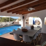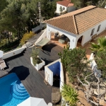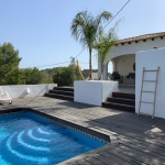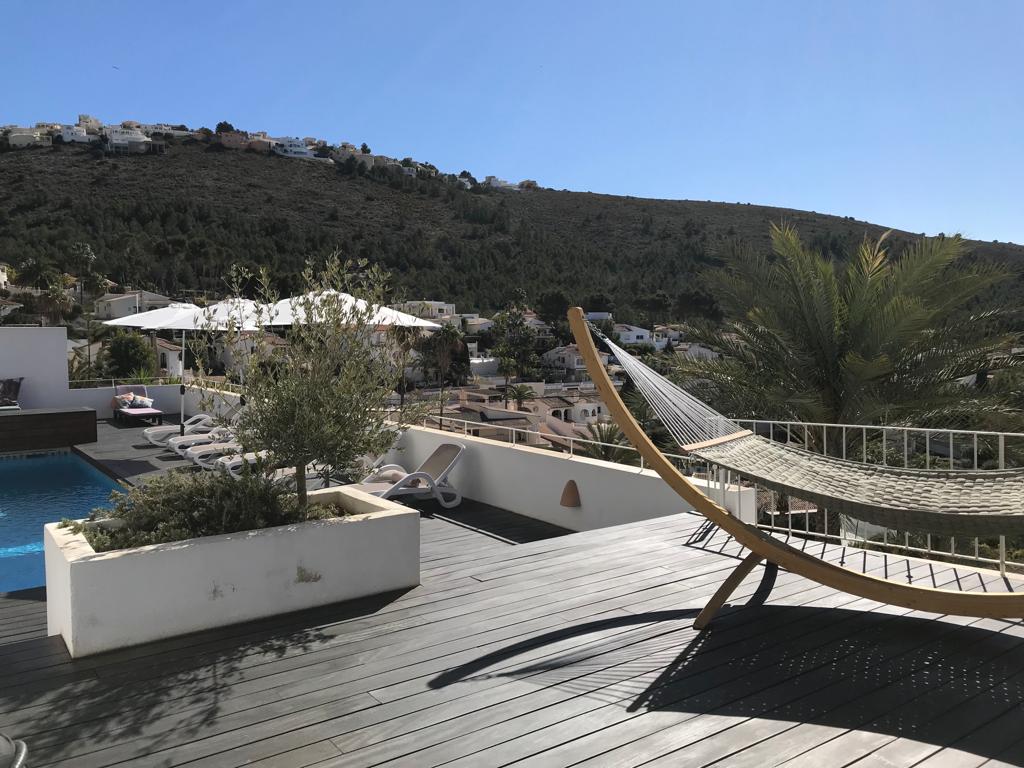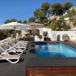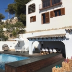 Moderne en zeer luxe vrijstaande villa met prive zwembad met in het hoofdhuis 3 slaapkamers met airco en 3 badkamers en in het poolhuis nog een slaapkamer en badkamer, zodat het huis geschikt is voor 10 volwassenen en 1 baby! Villa Montaña y Mar Moraira is daardoor uitermate geschikt voor bijvoorbeeld 2 gezinnen. De villa heeft een heerlijk groot privé zwembad van 9,5×4,5 en op zijn diepst 2,10 meter, buitenkeuken, groot terras en heeft een prachtig uitzicht! Het interieur is modern! Vanuit de woonkamer en vanuit uw ligstoel op het terras heeft u een prachtig uitzicht over de vallei met in de verte de glinsterende Middellandse zee.
